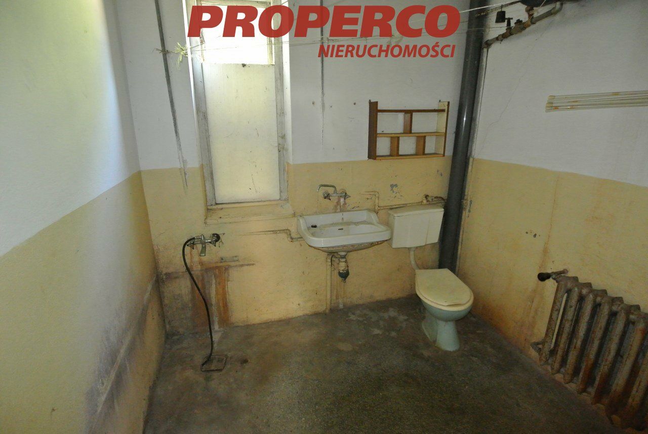 For Sale: A house with outbuildings located in Dziewięczyce, in the Działoszyce municipality, Pińczów district . The total area of the house is approximately 150 square meters, with a usable area of about 122 square meters. The house consists of, on the ground floor: a kitchen, 2 bedrooms, a pantry, and a hallway, and on the first floor: 5 bedrooms, a bathroom with a toilet, and a hallway. The house is constructed of brick, with a metal roof, and is partially basement.